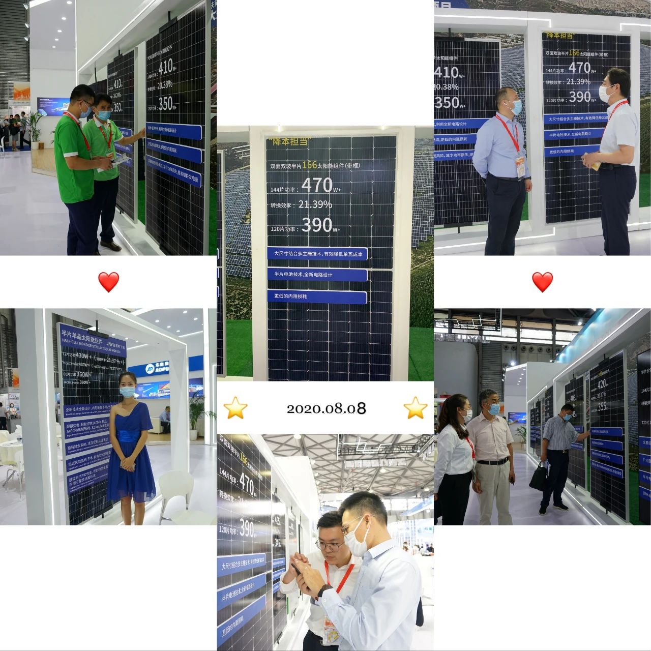 一直以來降本增效一直是光伏人孜孜不斷的追求,進入2020年以后,趨勢更甚,此次嘉寓光能攜“增效小能手”166雙面雙玻半片太陽能組件,9柵雙玻太陽能組件、9柵雙玻半片太陽能組件、9柵半片以及深受海外市場青睞的全黑系列等太陽能組件亮相展會,吸引聚集了眾多行業(yè)內(nèi)外的賓客前來參觀商談。在展會的第一天也收獲頗豐,達成了意向訂單400兆。
